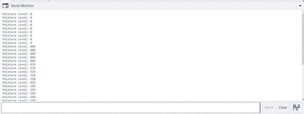 Interface moisture sensor with an Arduino board.First, the code defines a constant sensor with a value of A0. A0 is the analog pin on the Arduino board to which the moisture sensor is connected.In the setup() function, the code begins serial communication with the computer at a baud rate of 9600 using the Serial.begin() function. So this will allow the Arduino to send data to and receive data from the computer through the USB cable.In the loop() function, the code reads the analog signal from the moisture sensor using the analogRead() function and stores the value in the sensorValue variable. The value is then printed to the serial monitor using the Serial.print() and Serial.println() functions, with the text “Moisture Level” displayed before the value.The code includes a delay() function with a parameter of 1000 milliseconds, which pauses the program for 1 sec before taking another reading. This is to prevent rapid and unnecessary readings that could interfere with the accuracy of the data.This code provides a basic framework for reading data from the moisture sensor and displaying the readings in the serial monitor for further analysis or processing.